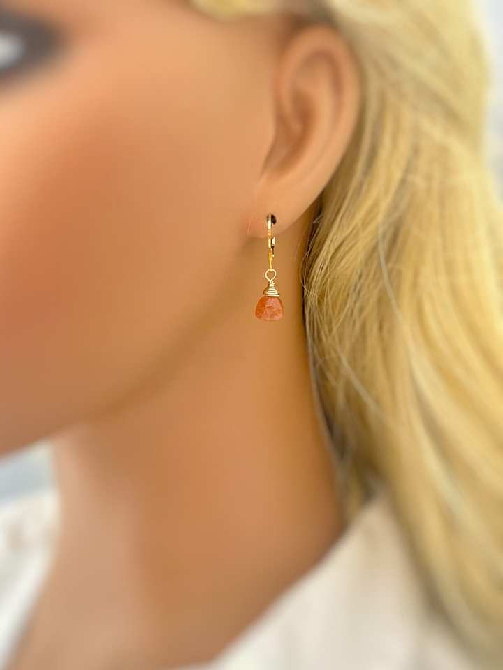 Boucles d'oreilles spéciales pour mariage et fête en argent sterling 925 plaqué rhodium pour femmes Pierre de soleil naturelle Bijoux indiens faits à la main