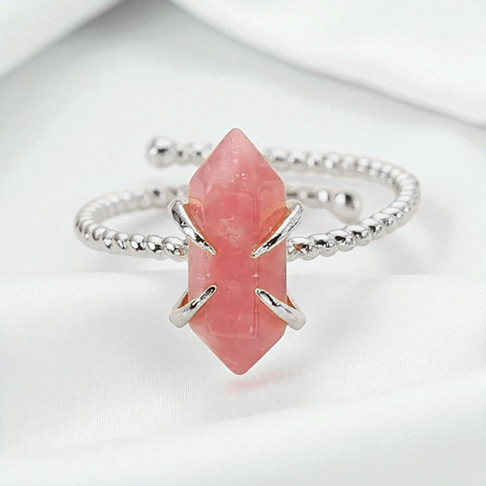 925 Sterling Silver Rhodonite Hexagon Point Original Gemstone Twisted Adjustable Band Prong Setting Ring Bulk Wholesale