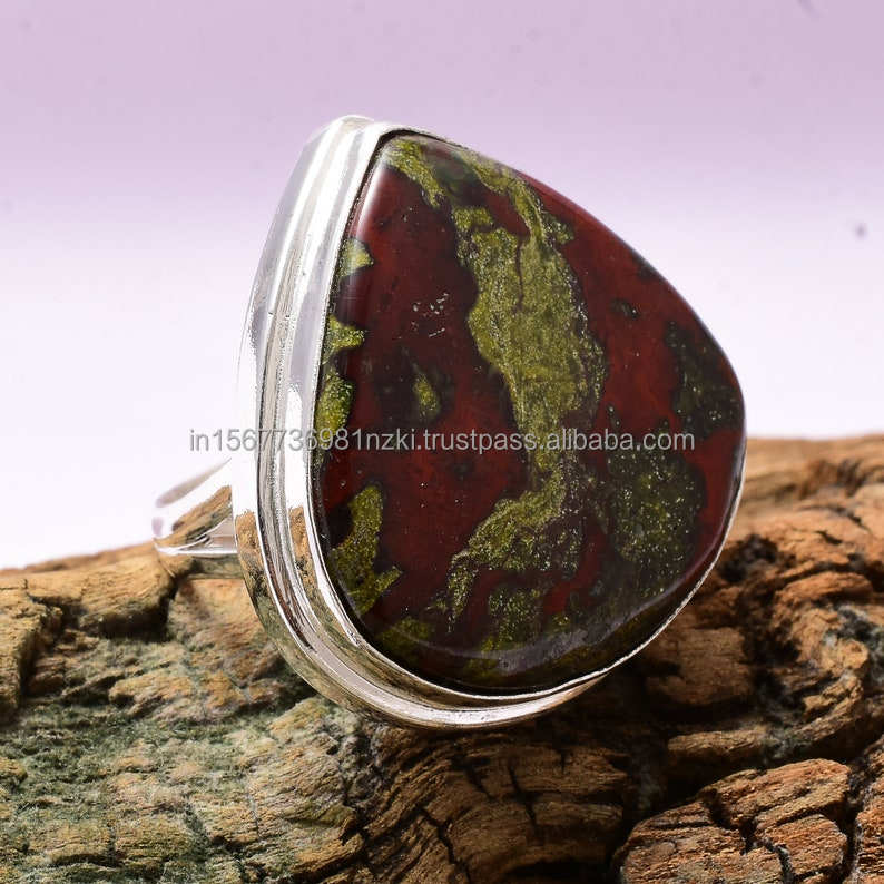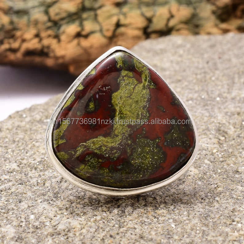 Nom du produit:Bague en argent sterling 925 avec jaspe sanguin