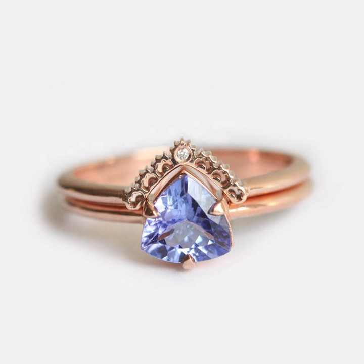 925 Sterling Silver Rose Gold Plated Trillion Cut Tanzanite Ring