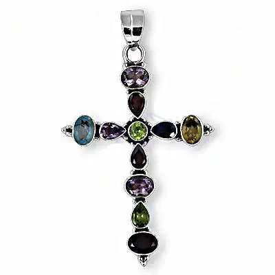 Pendentif en argent sterling 925 plaqué or rose avec rubis en forme de croix pour femmes
