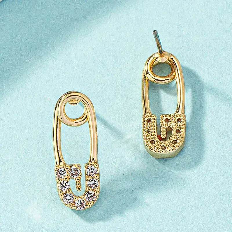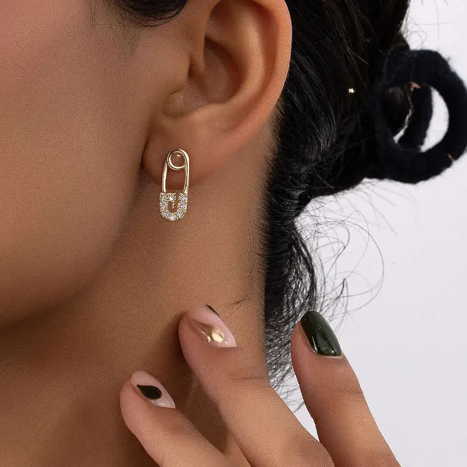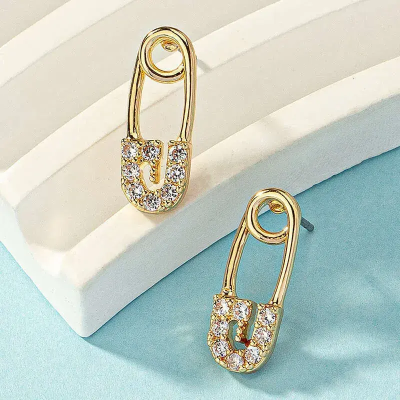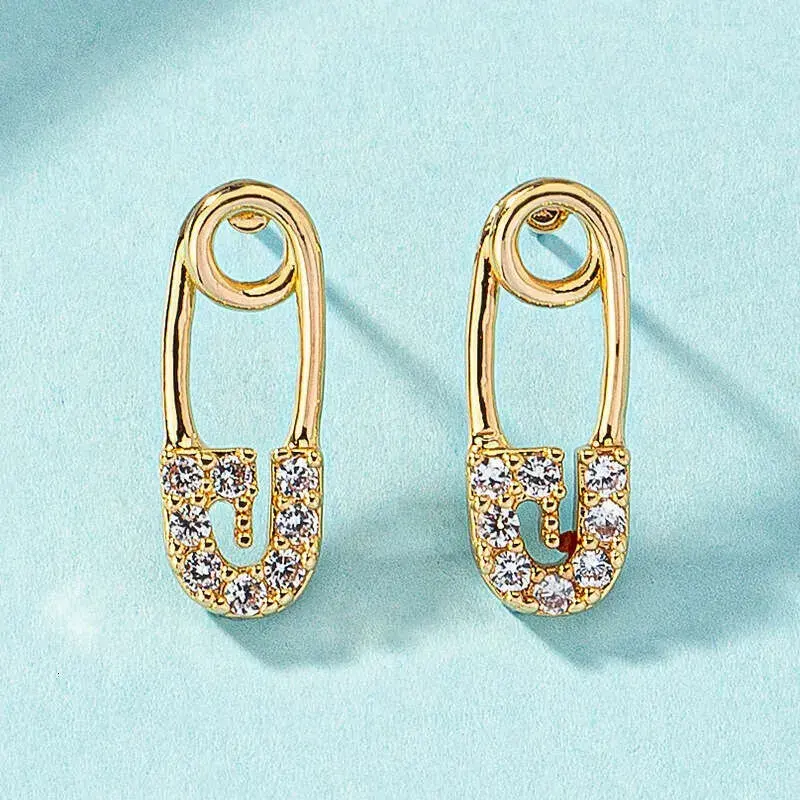 Boucles d'oreilles tendance en argent sterling 925, design épingle de sûreté, avec aiguille incrustée, style trombone, zircon, cadeau de mariage, fête d'anniversaire