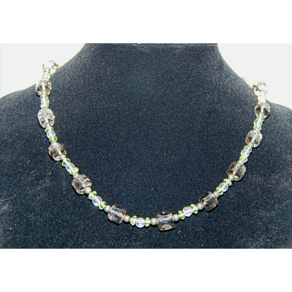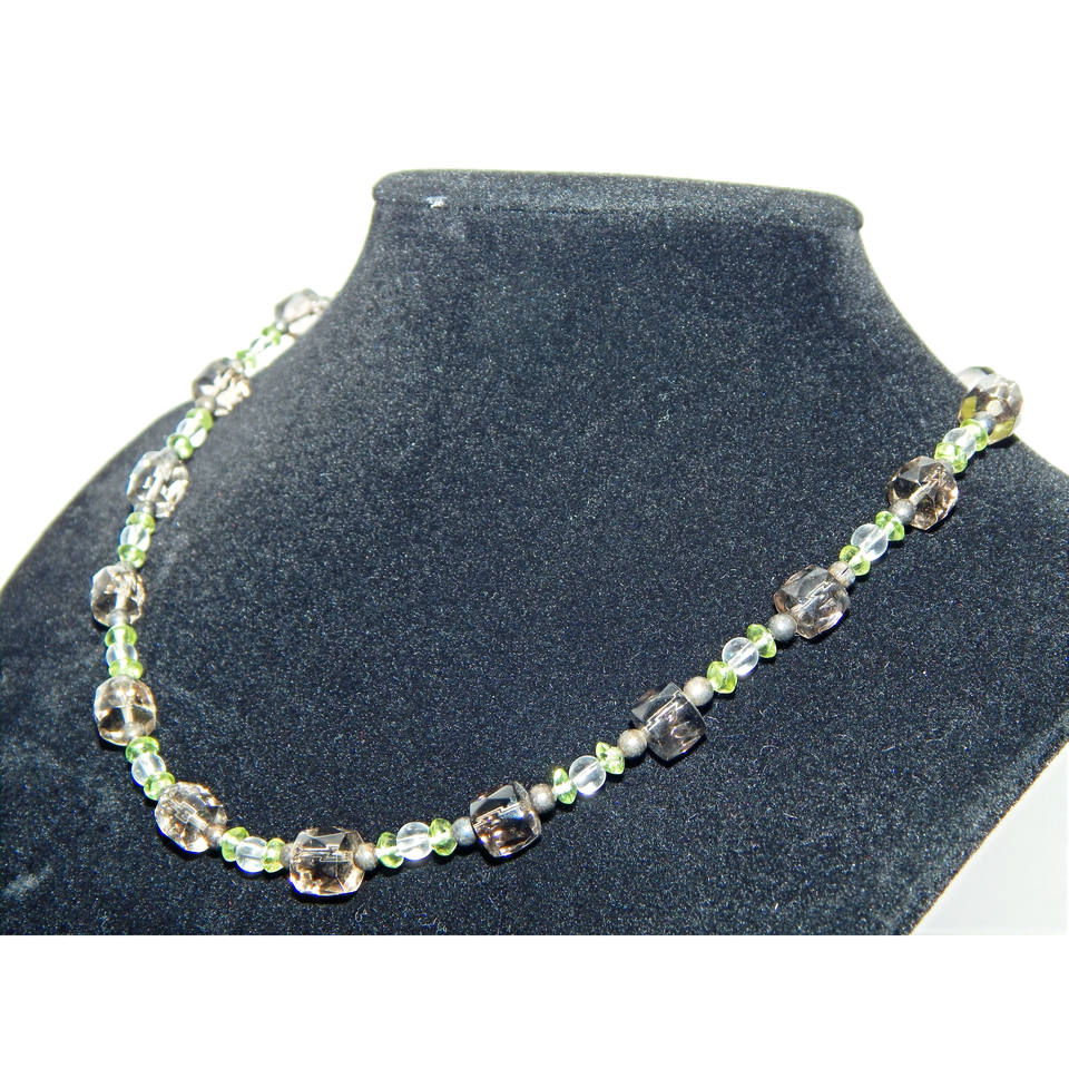 .925 Sterling Silver Smoky Quartz, Peridot, Hematite and White Spinel Necklace