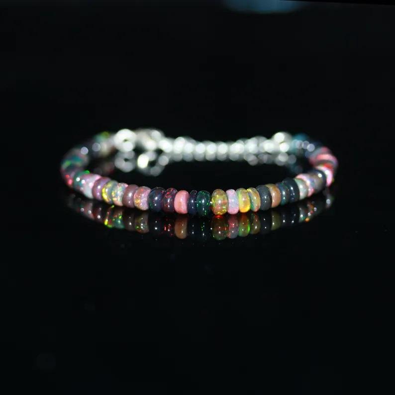 Bracelet en perles d'opale noire lisse en argent sterling 925 bijoux en pierres précieuses naturelles perlées fines cadeau personnalisé pour elle