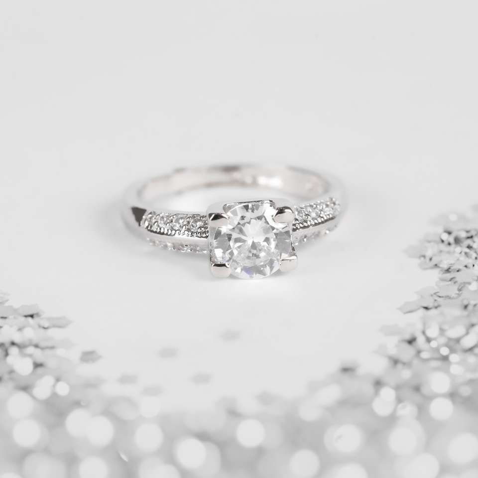 Bague solitaire coeur en cristal et strass pour femmes classiques pour fiançailles et mariage