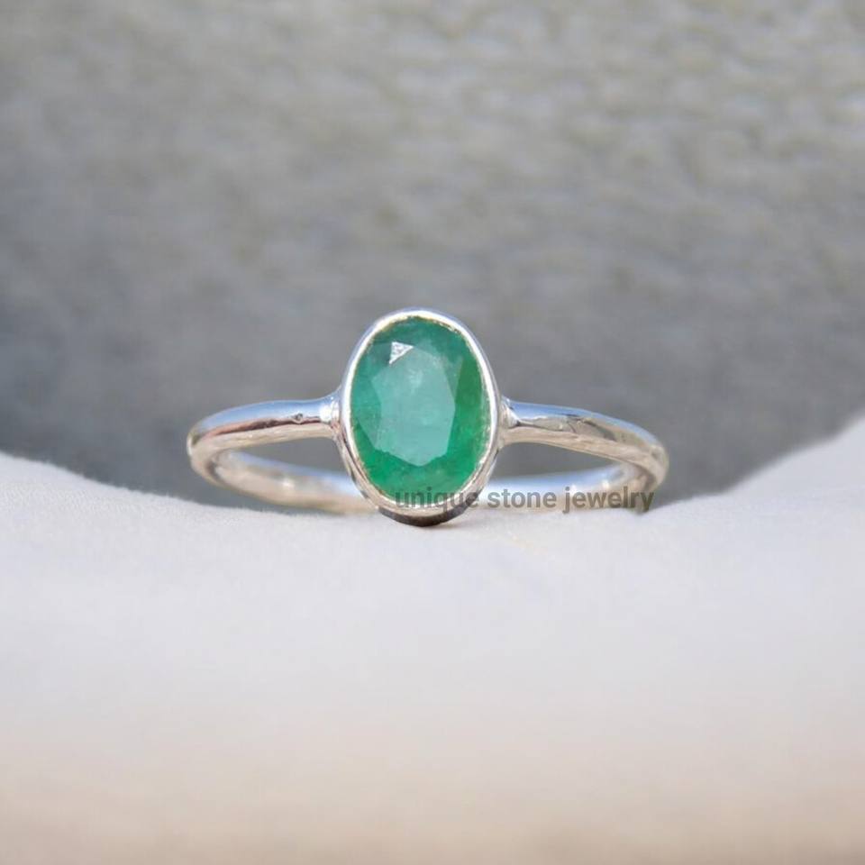 Bague en argent sterling 925 faite à la main pierre précieuse d'onyx à facettes vert naturel coupe ovale diamant lunette réglage bijoux fins