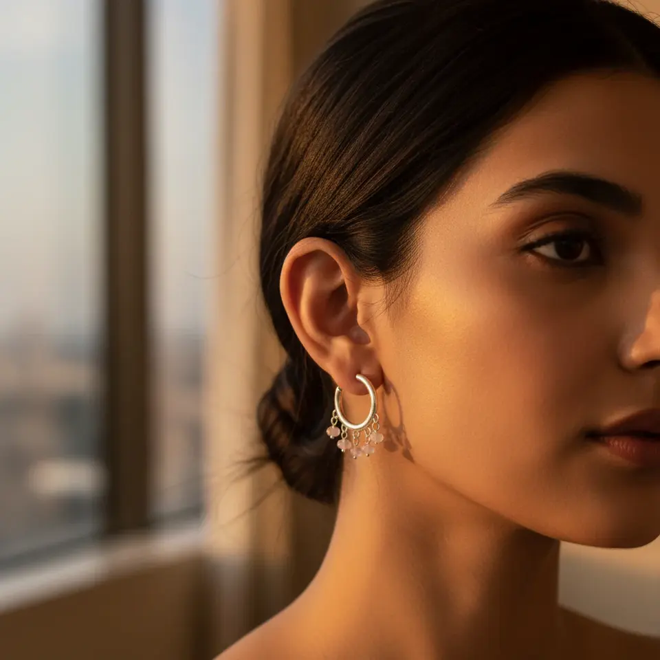 925 Sterling Silver Tassel and Flower-Shaped Hoop Earrings with Diamond Zircon Trendy Studs for Women's Wedding or Engagement