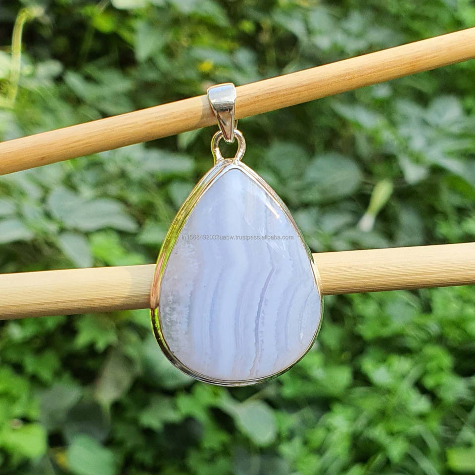 Product Name:Natural Blue Lace Agate 925 Sterling Silver Pendant for Necklace