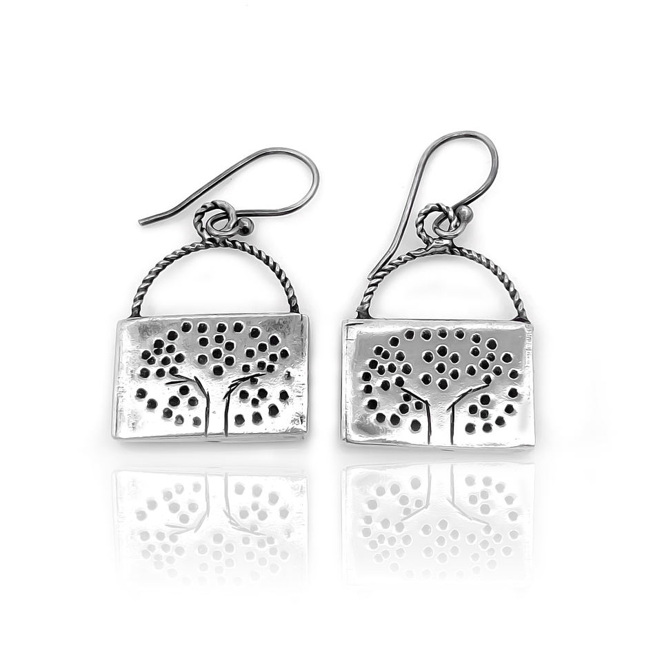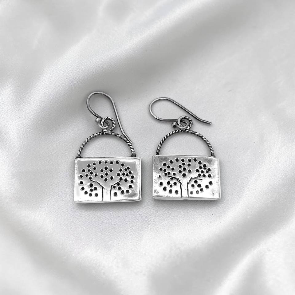 Boucles d'oreilles pendantes Arbre de Vie en argent sterling 925, faites à la main, inspirées de la nature, forme rectangulaire, finition oxydée, plaqué rhodium, cadeau
