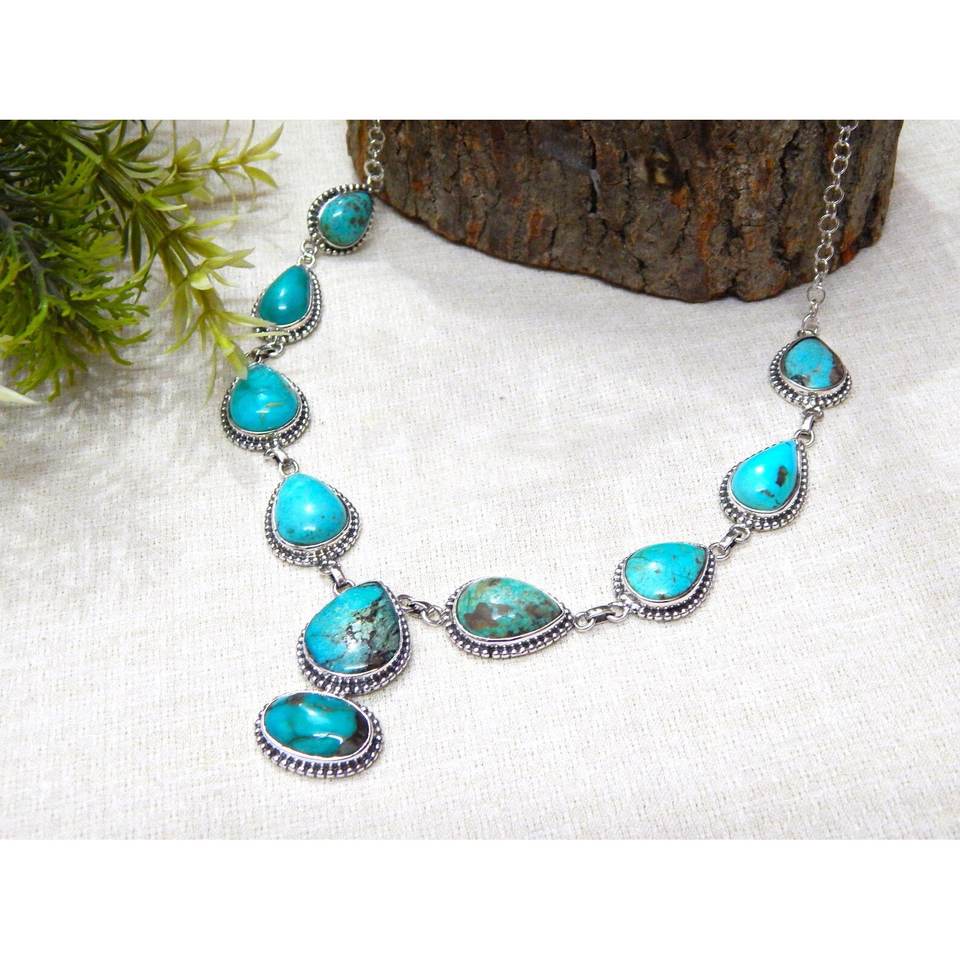 925 Sterling Silver Handmade Natural Blue Turquoise Gemstone Necklace with Diamond for Women Gift