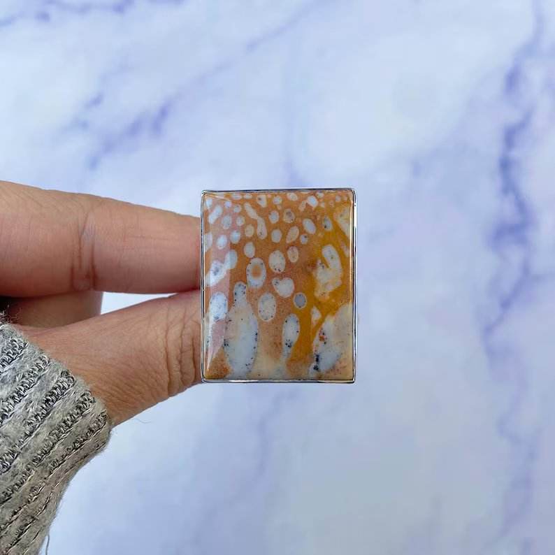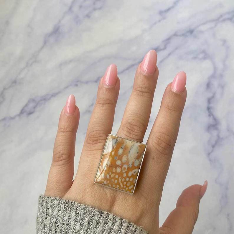 Bague de fiançailles en argent sterling 925 à la main avec cabochon de jaspe en argent fin pour cadeau de mariage