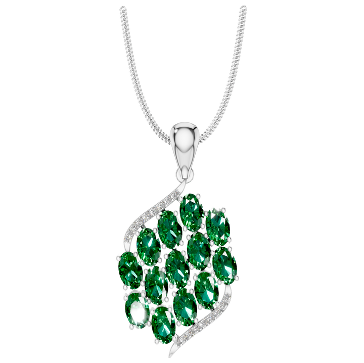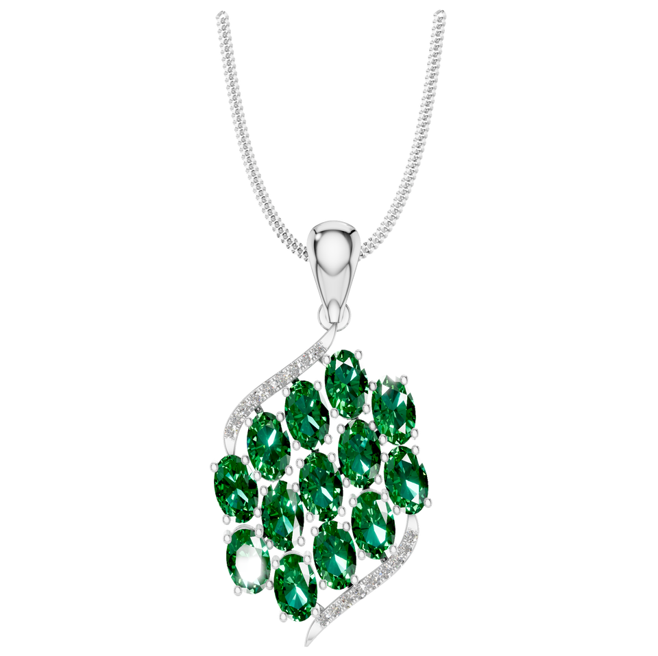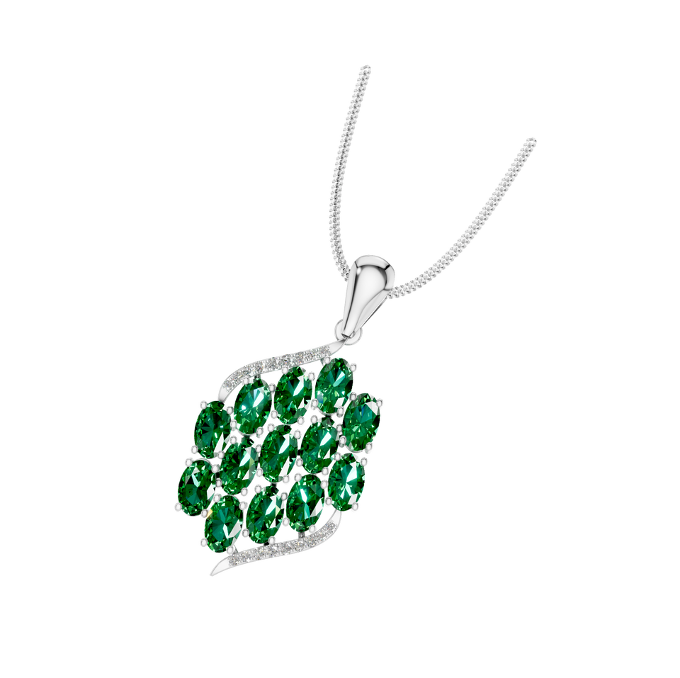 Style:Oval Shaped Emerald Gemstone Pendant Accented by Diamonds