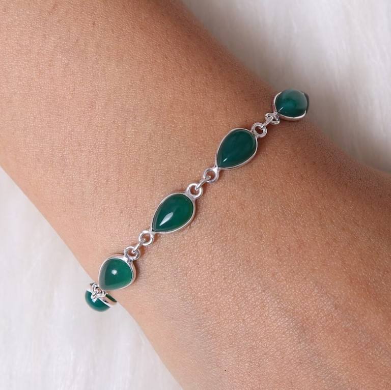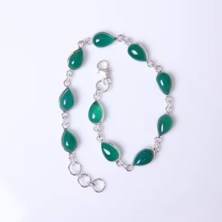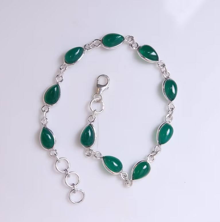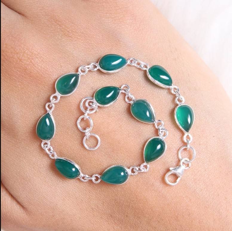 Product Name:Natural Green Onyx Gemstone silver bracelet