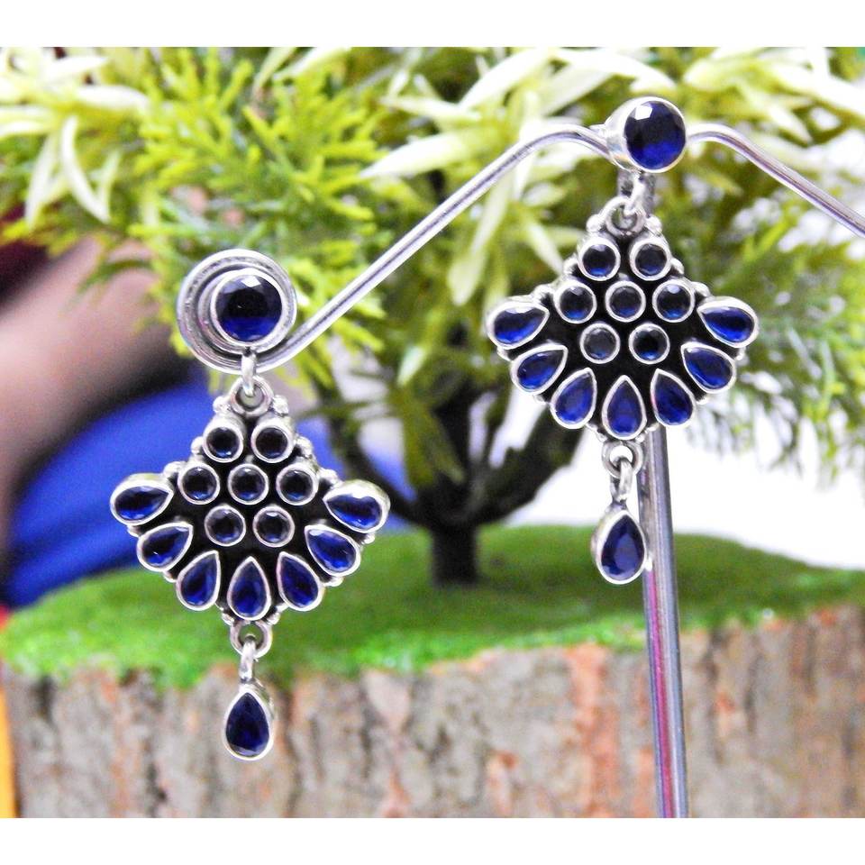 925 Sterling Silver Vintage Style Earring Stud Handmade Blue Onyx Gemstone Blue Onyx Earring Stud Gift for Women