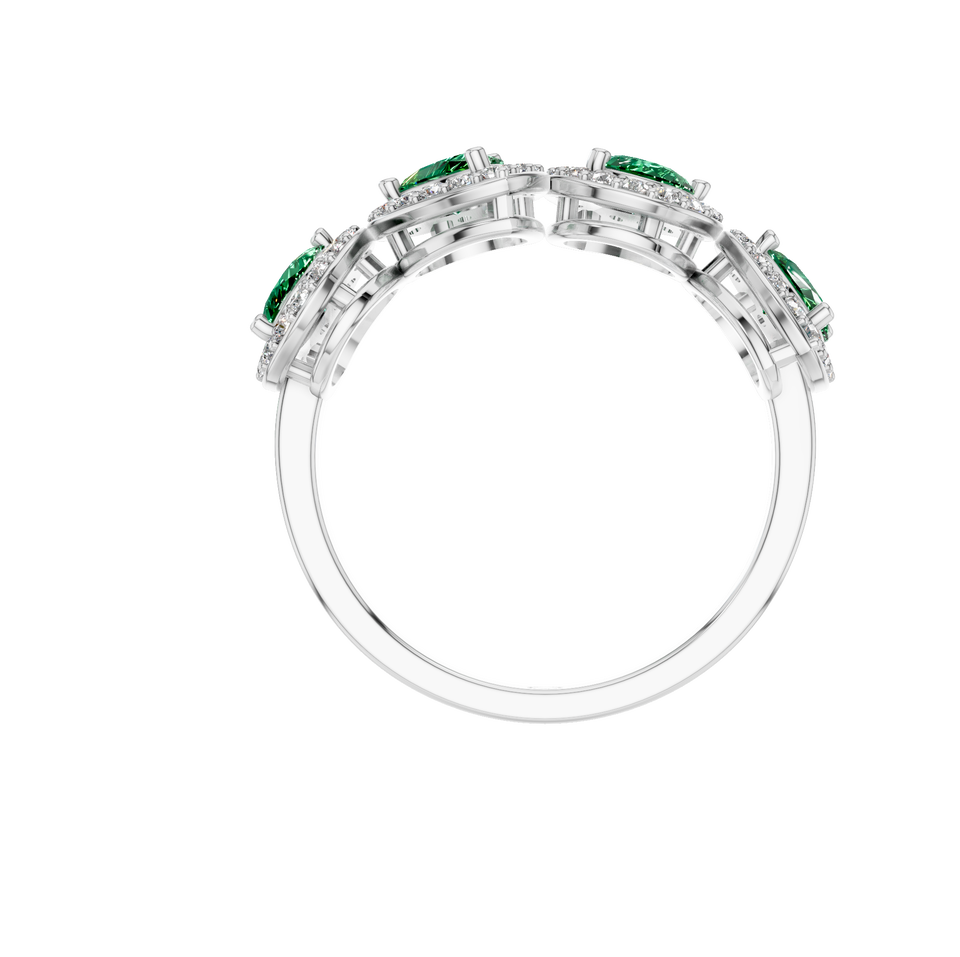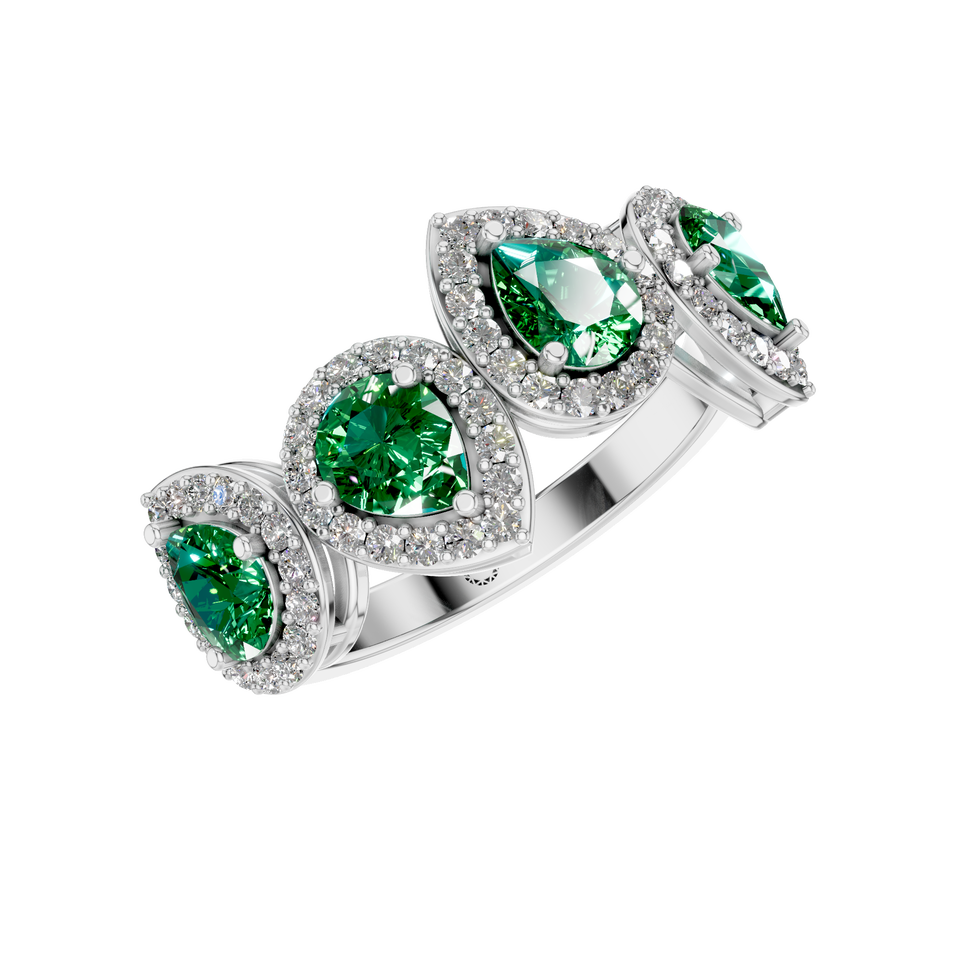 Style:4 Stone Natural Pear Shaped Emerald Gemstone Ring