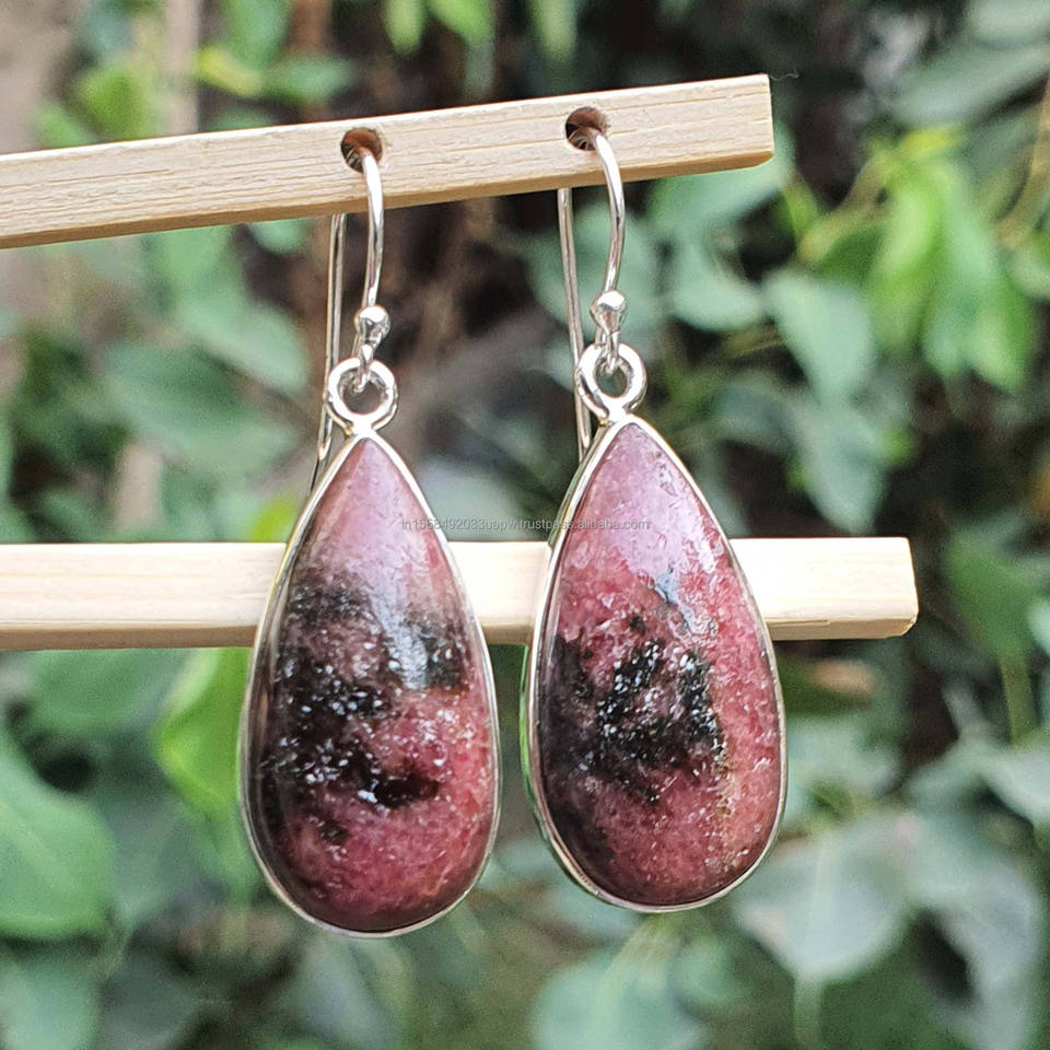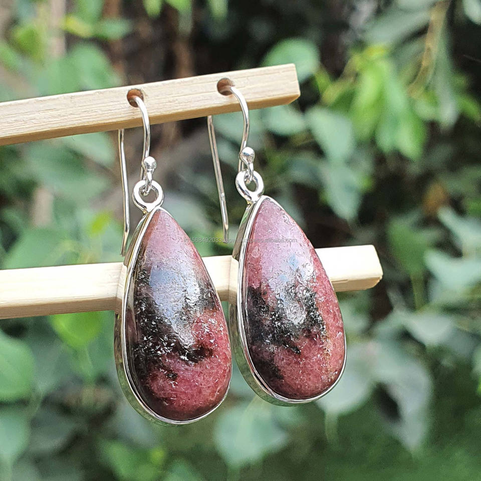 Jewelry Name:925 Sterling Silver Natural Pink Rhodonite Dangle Earrings