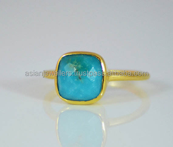 Bague artisanale en argent Sterling 925 Turquoise et Vermeil en or fait à la main