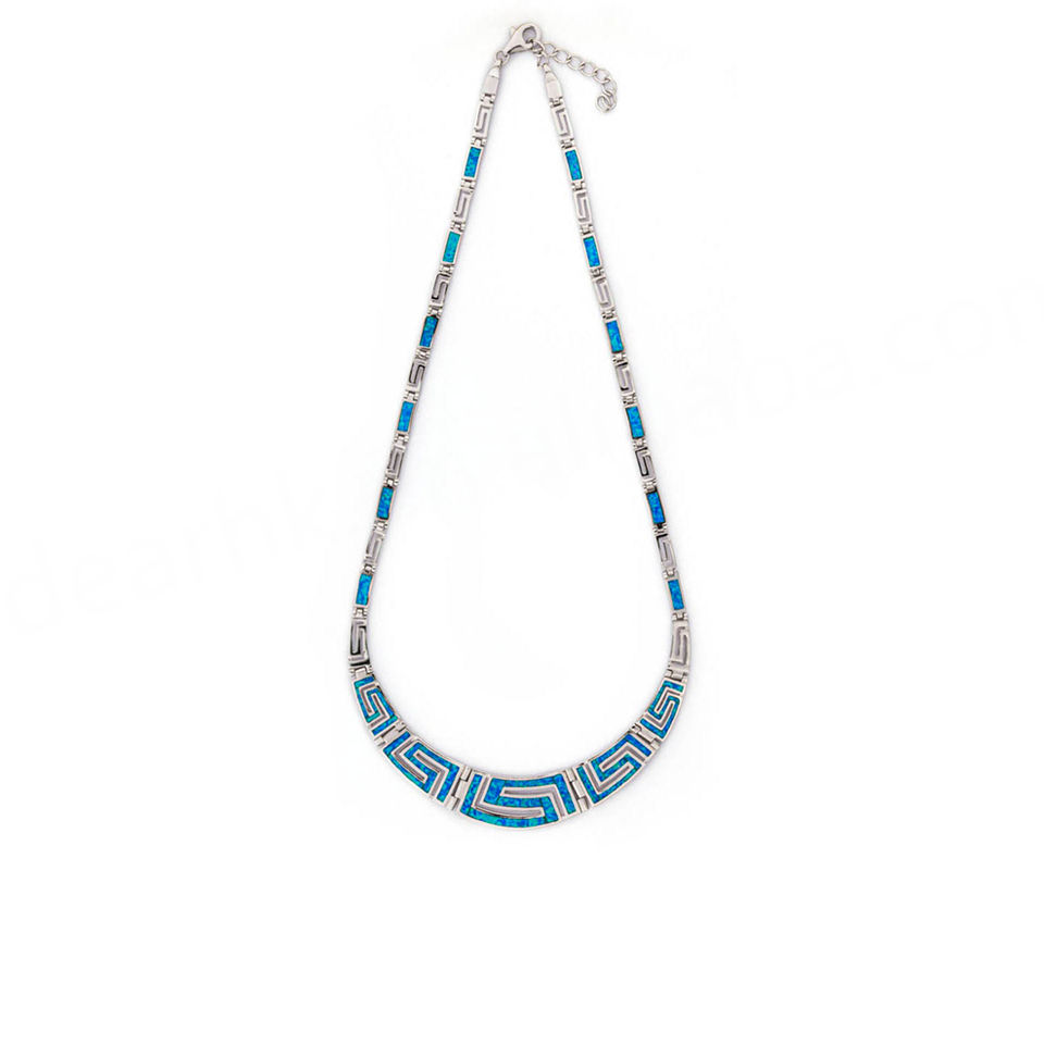 Collier rond en opale bleue avec des motifs grecs uniques en argent sterling 925 pour filles