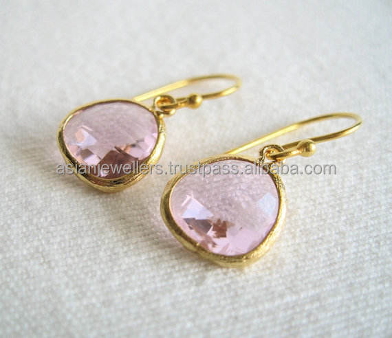 Boucles d'oreilles en argent sterling 925, pierres précieuses, Quartz rose, en or scintillant