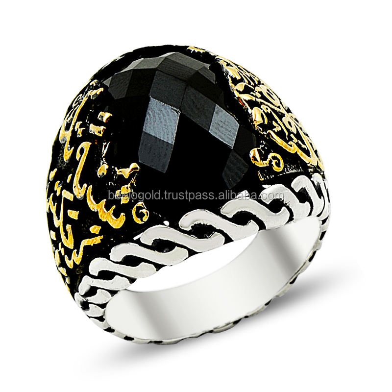 Bague en argent Sterling 925 pour hommes, Onyx, Design islamique, bijou pour hommes