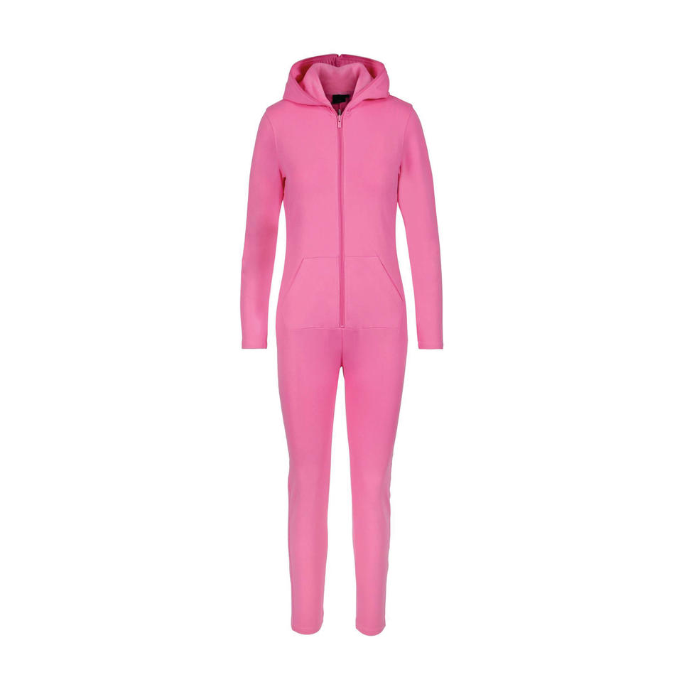 93% Cotton 7% Elastane One Way Zipper Opening Front Kangaroo Pocket Hot Pink Women Original Fitted Onesie Slim Jumpsuit