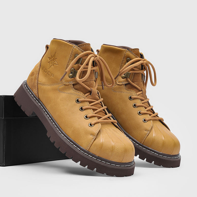 Bottes à lacets rétro 931163, embouts en coquille, tendance décontractée, bottes à semelle épaisse pour hommes, bottes à hauteur accrue, bottes de travail, grandes bottes jaunes