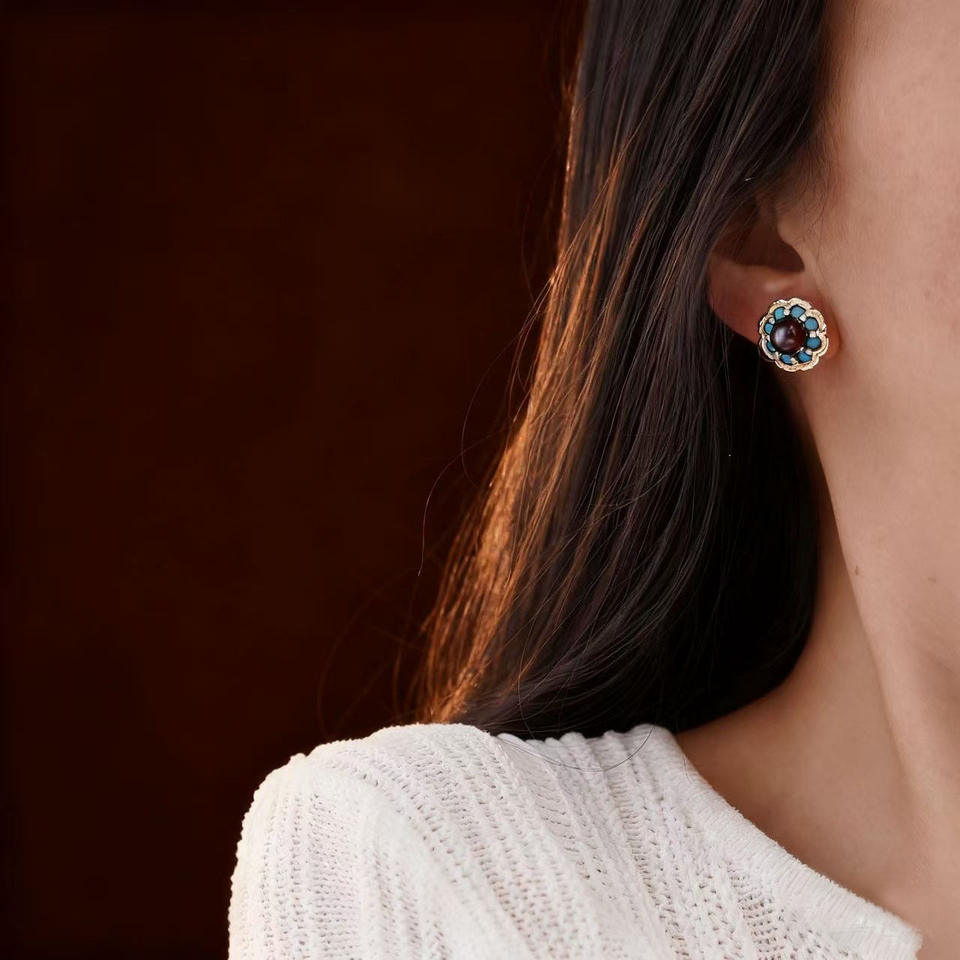 9344 Accessoires de perles DIY style panda, ensemble en argent S925 avec pendentif vide en or et argent et boucles d'oreilles, bijoux de mode