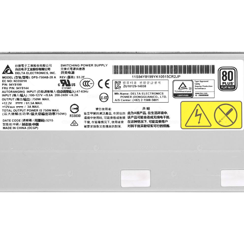 94Y8144 IBM LENOVO POWER SUPPLY 750W 80+ PLATINUM FOR X3550 M5 Refurbished