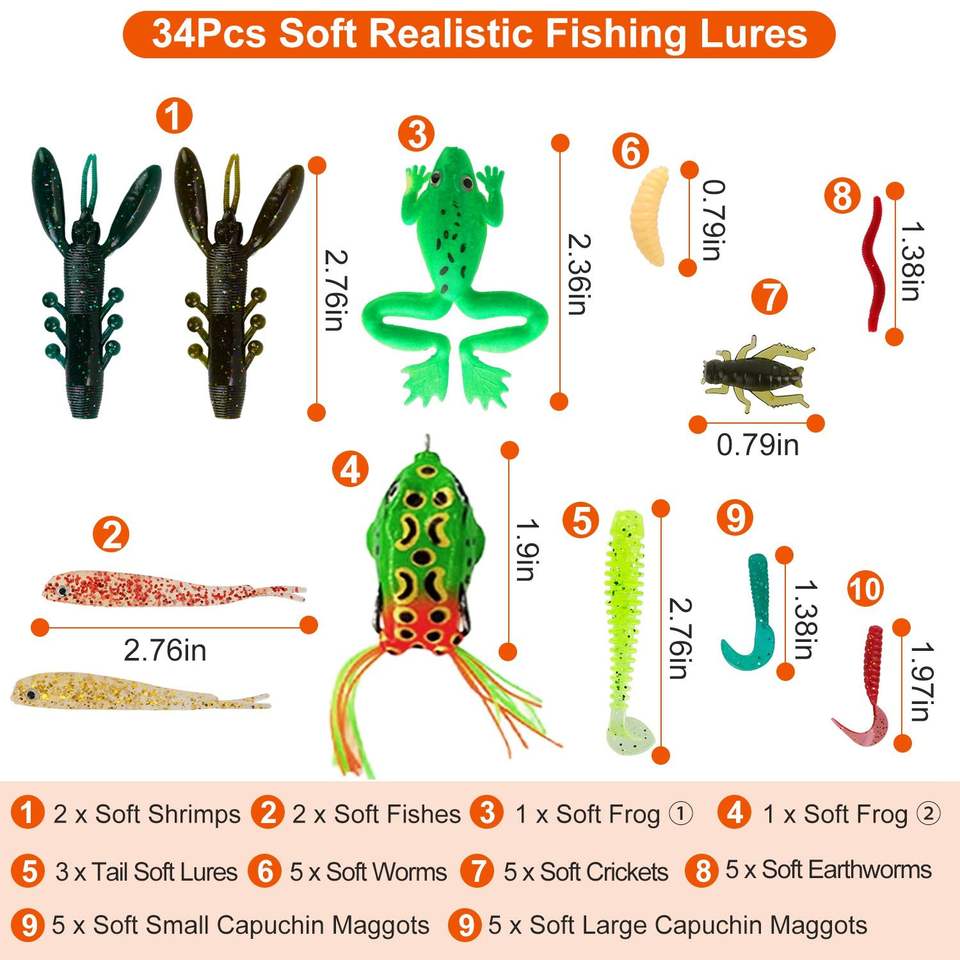 Kit de 94 leurres de pêche en plastique souple avec vers et grenouilles crankbaits pour la pêche en eau douce et salée, boîte de rangement incluse