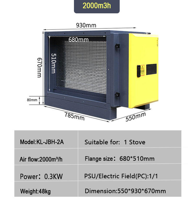 Filtre ESP à 95 % d'efficacité d'élimination des fumées, absorbeur d'odeurs de fumée d'huile, purificateur de fumée électrostatique pour cuisine commerciale