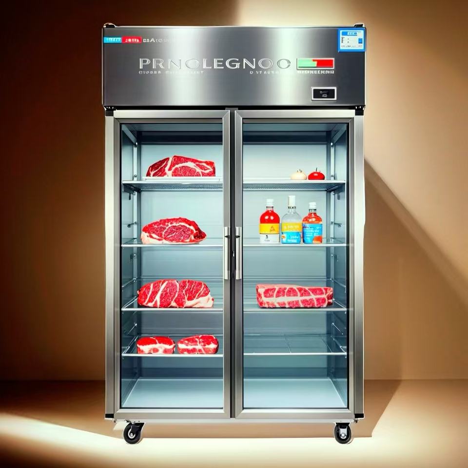 Réfrigérateurs à congélateur supérieur à refroidissement direct 950L, congélateur vertical, deux grandes portes vitrées, refroidisseur vertical à refroidissement direct