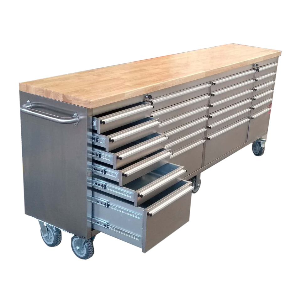 Nom du produit:96 pouces pas cher en acier inoxydable atelier outil armoire avec dessus en bois