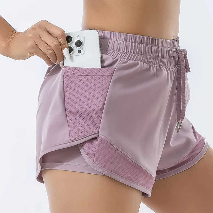 Shorts pour femmes à taille haute, 96% nylon, 4% élasthanne, ajustement parfait, avec poche cachée, doublure respirante et design respirant caché