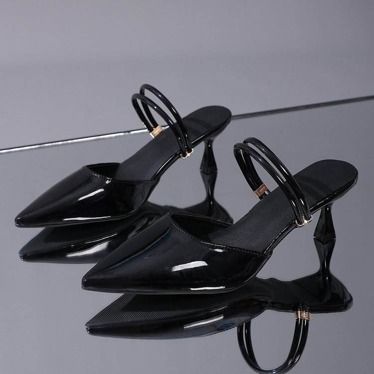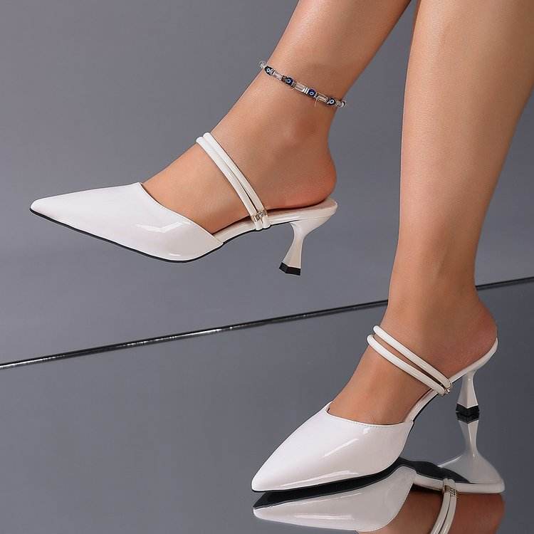 9670-3 Sandales à talons hauts à bout fermé couleur unie, nouvelle mode estivale, escarpins à enfiler à bout fermé, grande taille, chaussures pour femmes