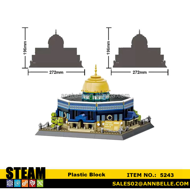 983 pièces de briques en plastique, mosquée célèbre, la mosquée du Dôme du Rocher, le Mont du Temple à Jérusalem, bloc islamique du Ramadan musulman