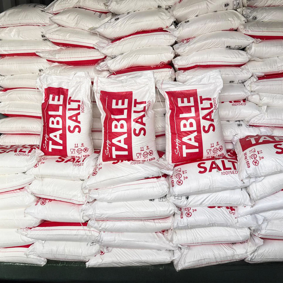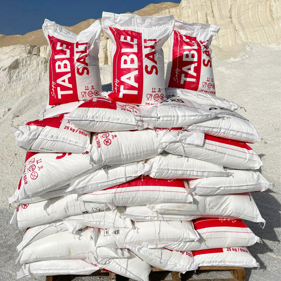 Sel de mer blanc raffiné iodé à 99,8 % de pureté | Certifié HACCP ISO 9001 Qualité Alimentaire | Sac de 25 kg Égypte pour usage domestique en cuisine