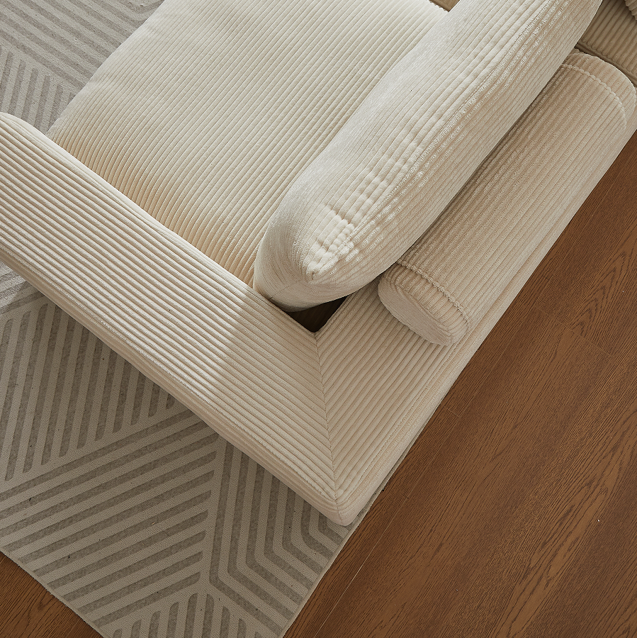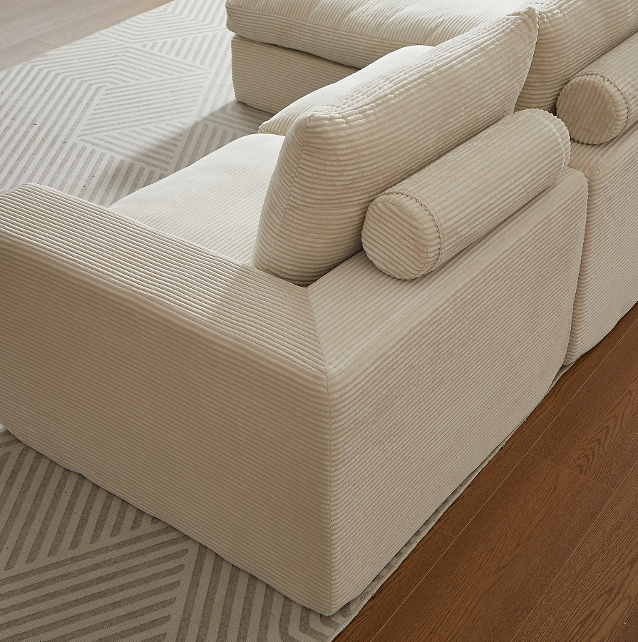 99-Inch Boneless Couch Chaise L-Shaped Modern Upholstered Sectional Sofa Set Three Pillows Corduroy PU Cover Living Room