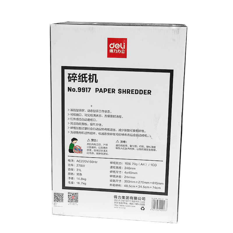 Déchiqueteuse de papier 9917 pour papier 16 feuilles, CD, carte PVC