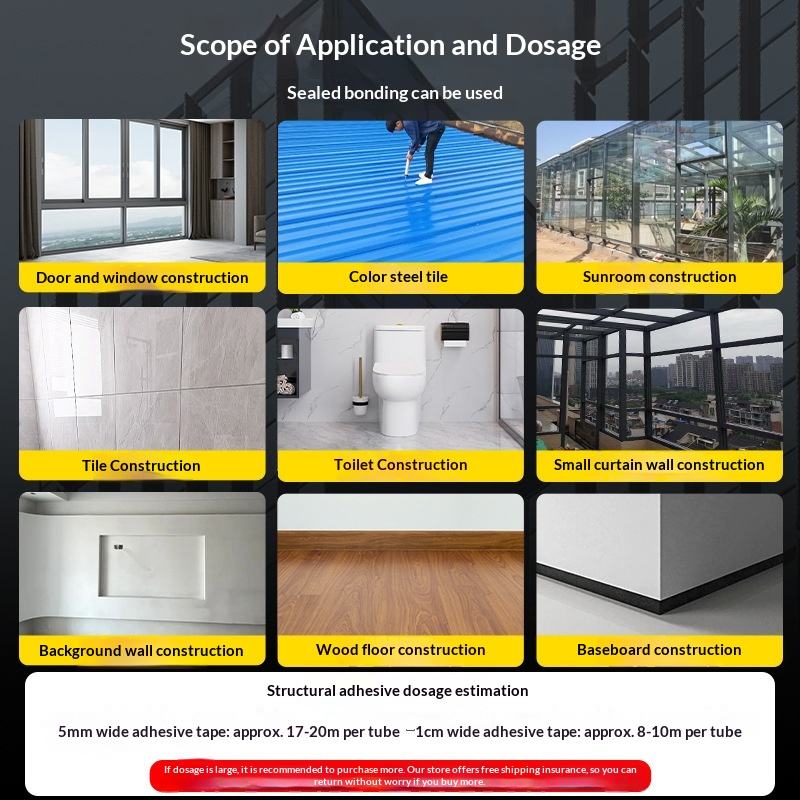 Adhésif structurel en silicone neutre 995, résistant aux intempéries, spécial pour carreaux de céramique, portes, fenêtres, verre, étanchéité extérieure