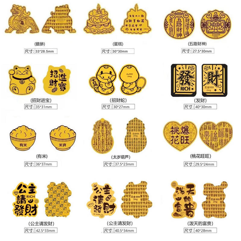 Autocollant pour téléphone portable en or pur 999, feuille de 2 mg, avec adhésif au dos. Dieu de la richesse, Princesse de la richesse