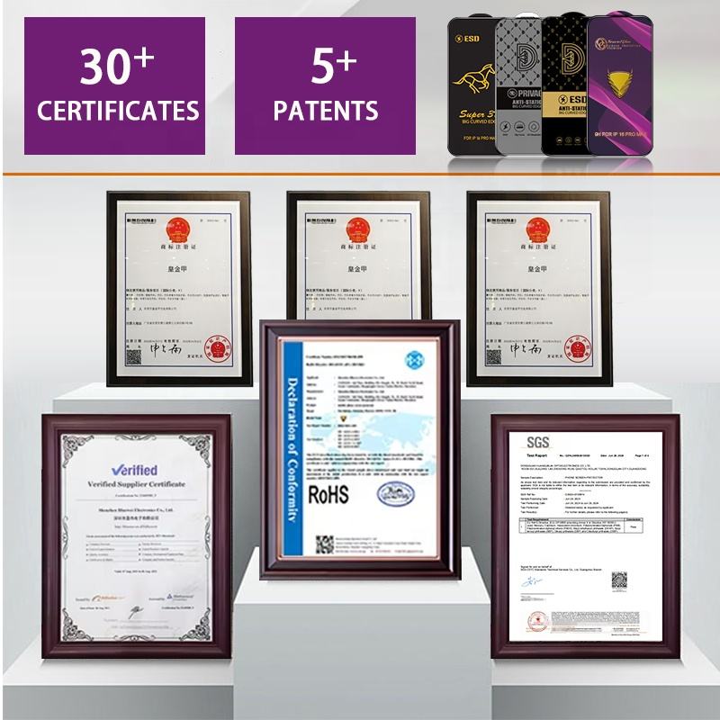 Anti-éraflure, Anti-ESPION, Anti-explosion, Anti-empreintes Digitales, Haute Transparence, Anti choc, Antistatique, Résistante à la saleté