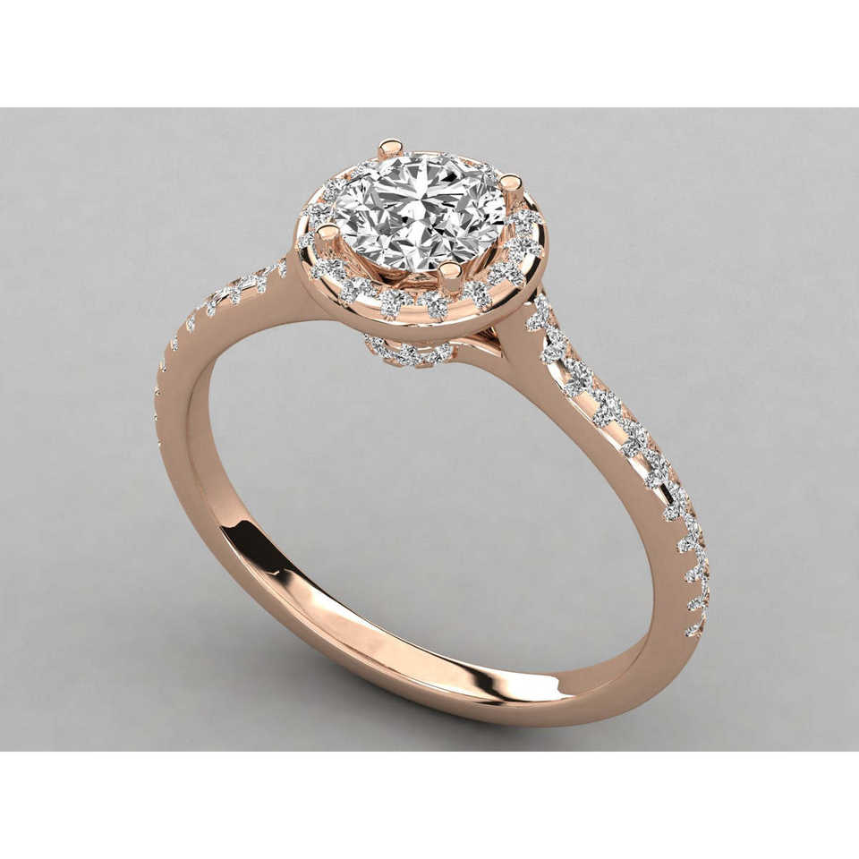 Bague solitaire en or 9 carats pour femme avec diamant rond, design brillant