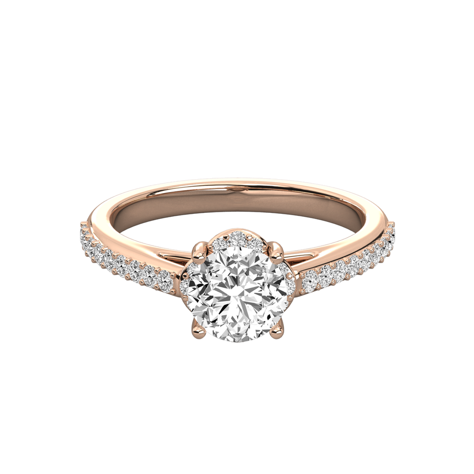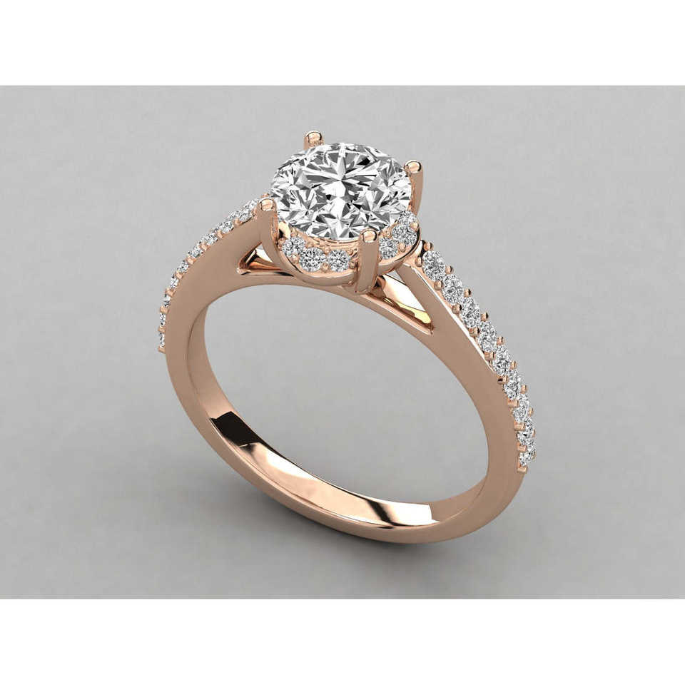 Bague solitaire en or 9 carats pour femme avec diamant rond, design brillant
