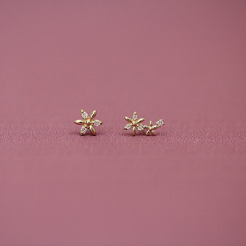 Boucles d'oreilles clous mini fleur délicates en or jaune 9K, bijoux fins, grenat taille poire, style simple et tendance, pour femme, mariage