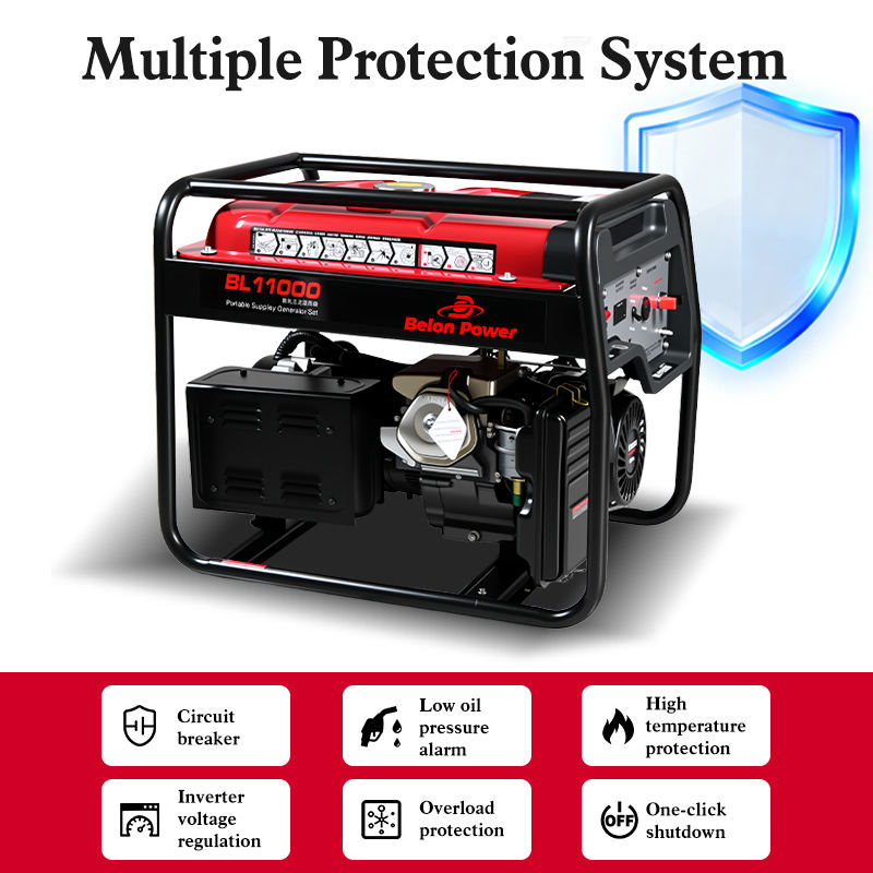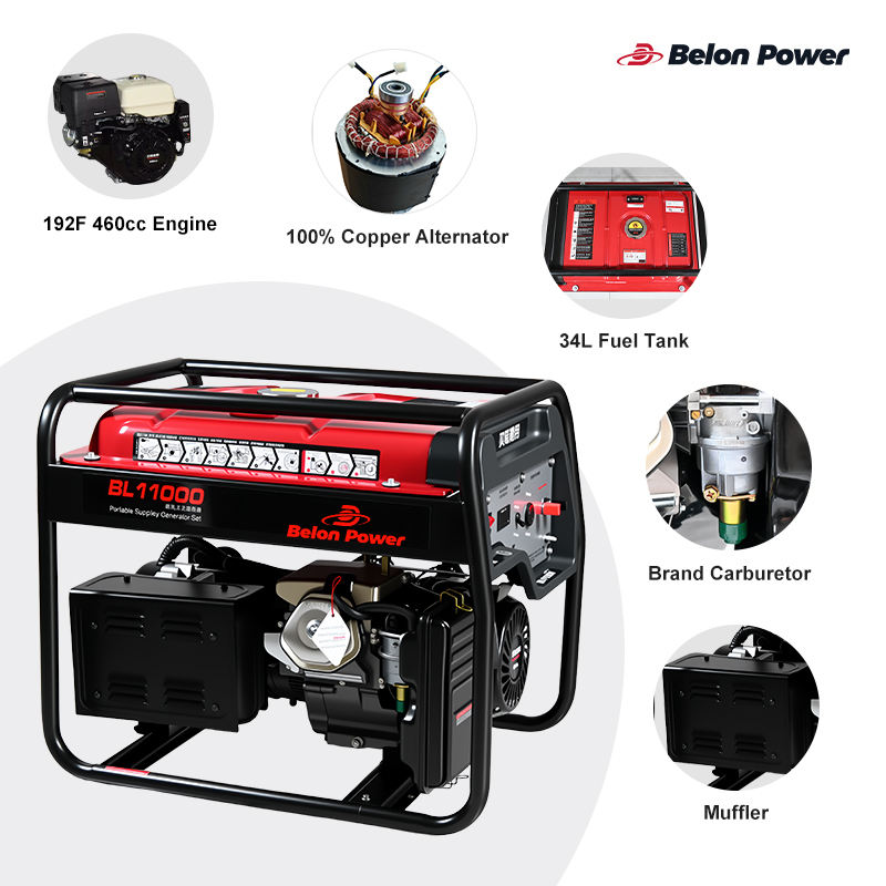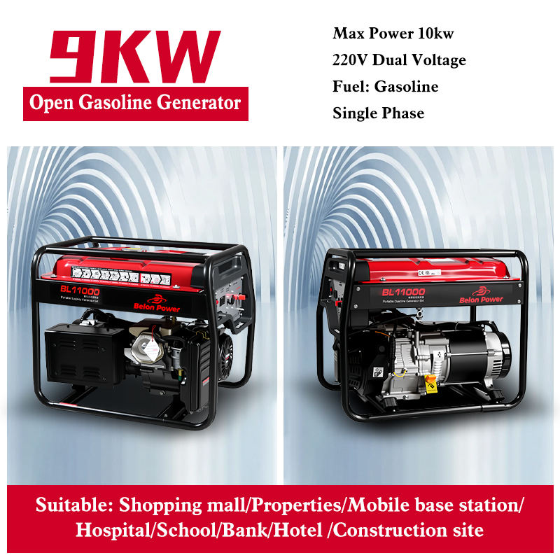 Générateur à essence monocylindre à cadre ouvert de 9 kW refroidi par air pour activités de plein air, réservoir de carburant de 34 L, moteur à essence 192FE