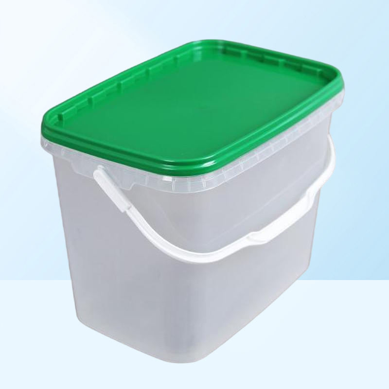 Seau rectangulaire en plastique de 9 L avec couvercle détachable, impression IML blanche, tambour/seau/baril
