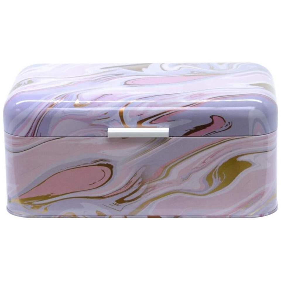 Boîte à pain rectangulaire 9L avec couvercle à charnière 209x365x120mm Rose et or Texture marbre Stockage et récipient pour aliments
