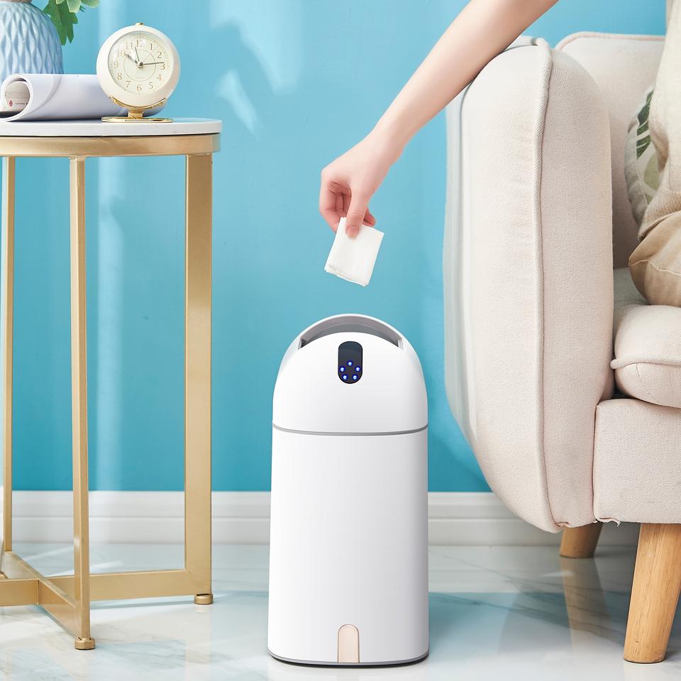 Poubelle intelligente 9L à capteur pour la maison ou le bureau Double ouverture et batterie rechargeable Type de glissière en plastique pour la cuisine et la chambre à coucher