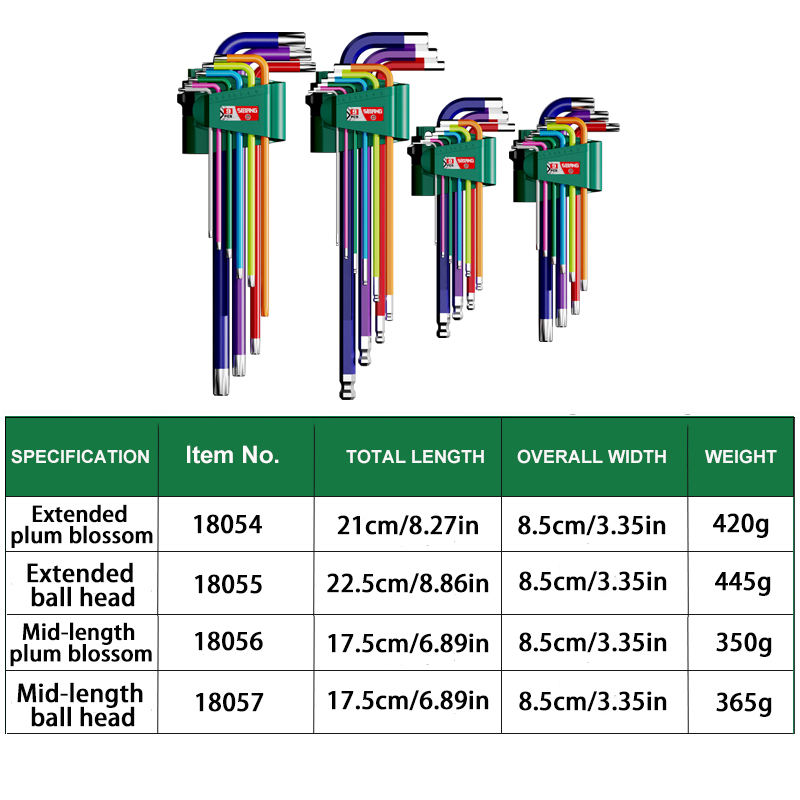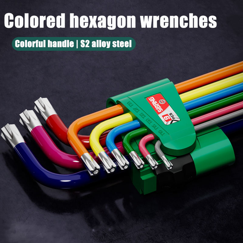 Jeu de 9 clés hexagonales intérieures pour vélo en acier CR-V avec ouverture à billes plates colorées pour vélo