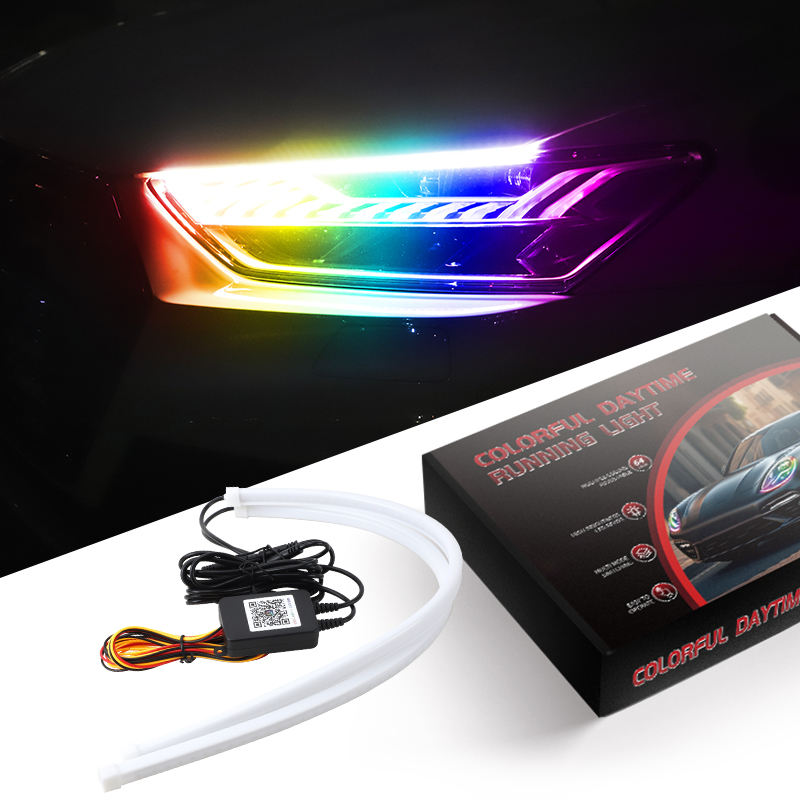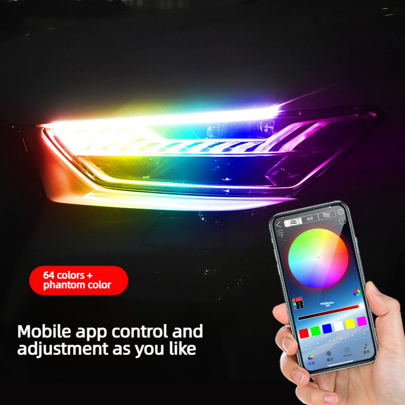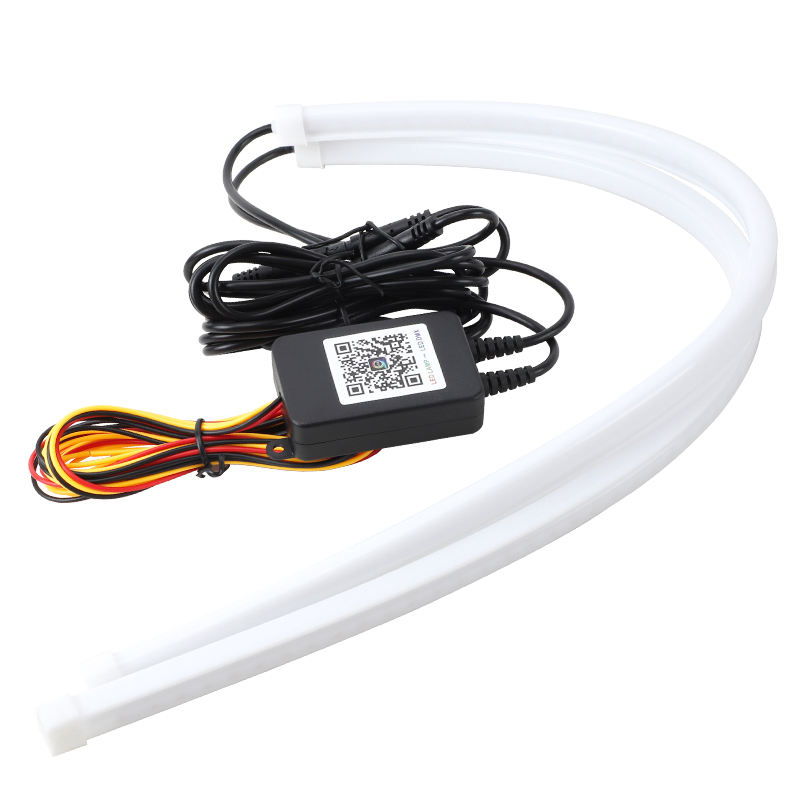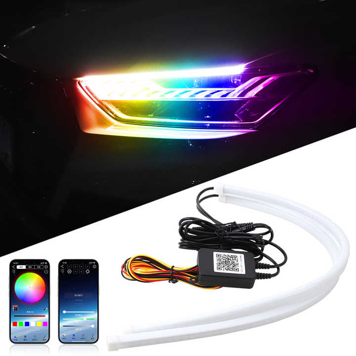Feux de jour décoratifs flexibles pour voiture, contrôlables par application à distance, 9V-30V, clignotants, lumières de jour colorées, disponibles en tailles 30cm, 45cm, 60cm